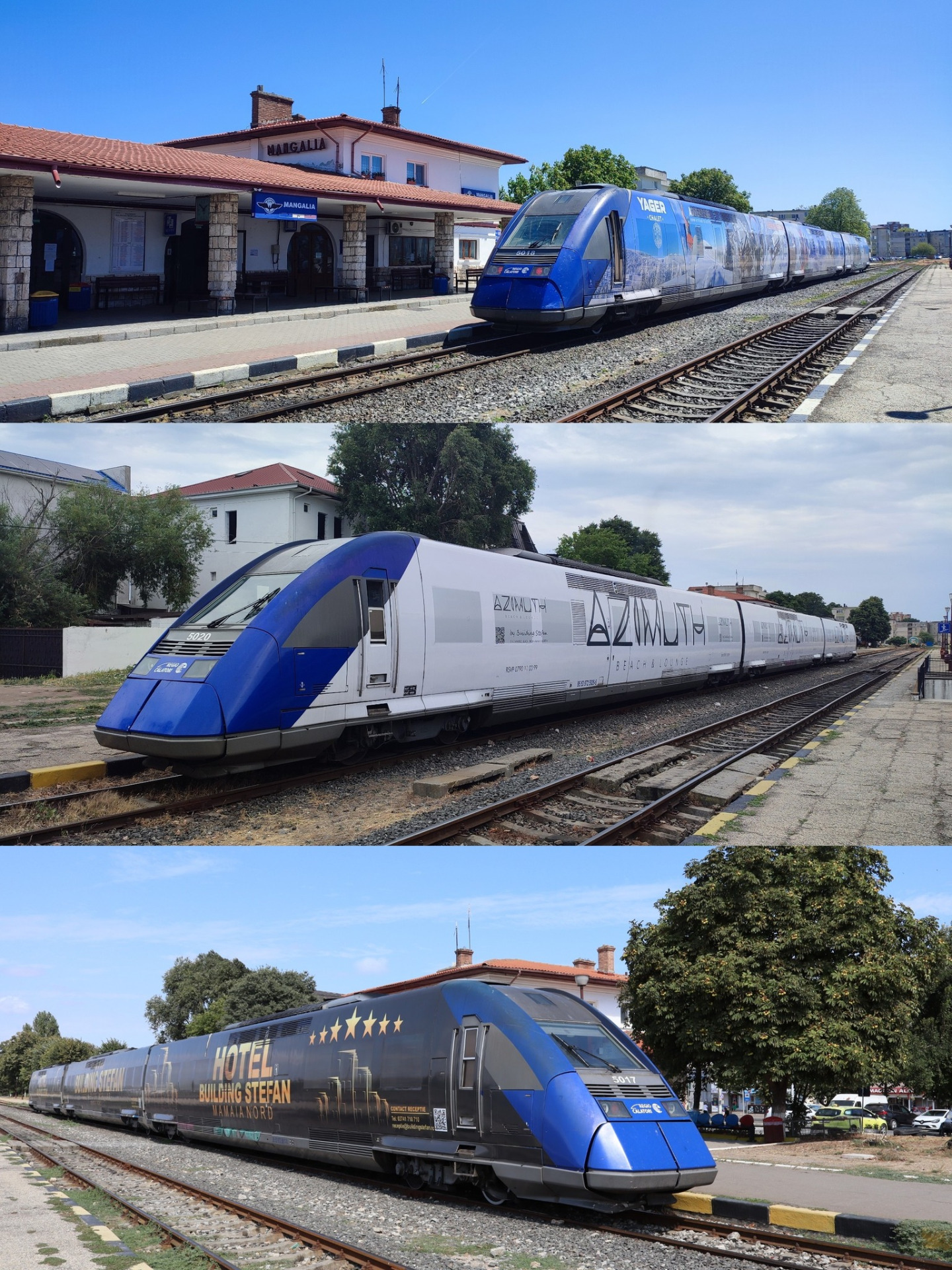 Cele 3 variante de colantare ale Regio Călători din sezonul 2025 le aveți în colajul de mai jos, unii nu le suporta, eu nu le-am dat atenție, important este că au adus o pată de culoare și diversitate în gara Mangalia într-un sezon estival nu prea reușit