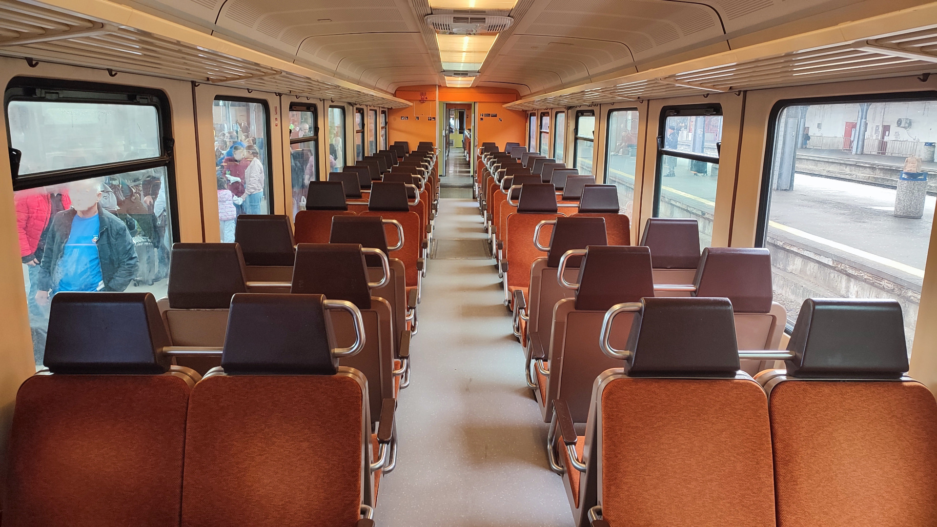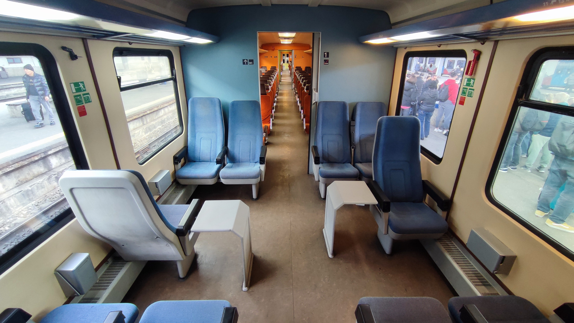 La urcarea în vagonul de clasa a 2-a există o zonă cu strapontine foarte generoasă unde se pot poziționa biciclete și bagaje voluminoase, o surpriză plăcută dacă ținem cont că materialul rulant nou nu mai are opțiunea asta, o zona fără scaune clasice unde poți transporta orice poți bagă în tren pe ușa!